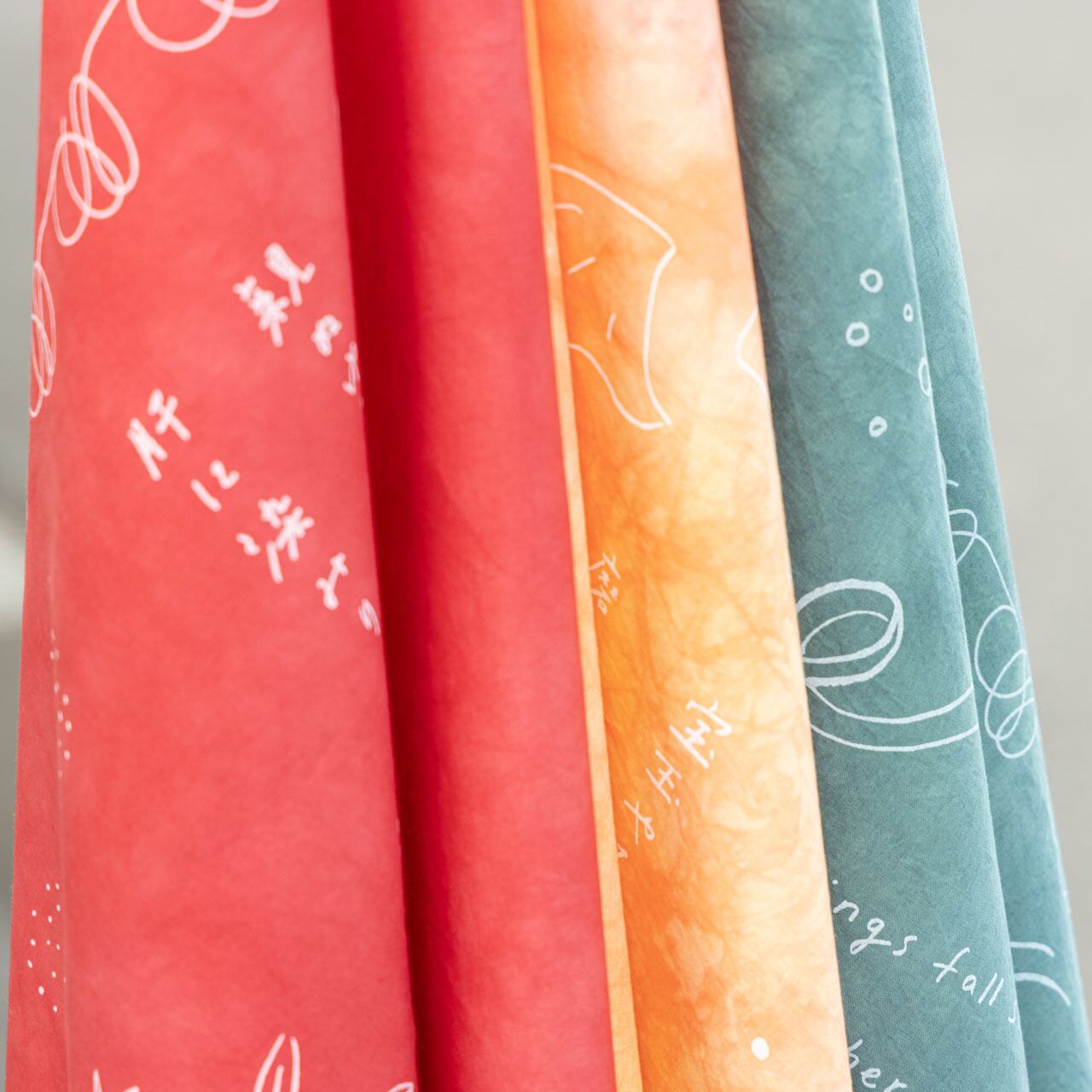 1 枚 1 枚を手染めで製作しています。個体差、色の変化はこの商品が持つ魅力のひとつとしてお楽しみください。